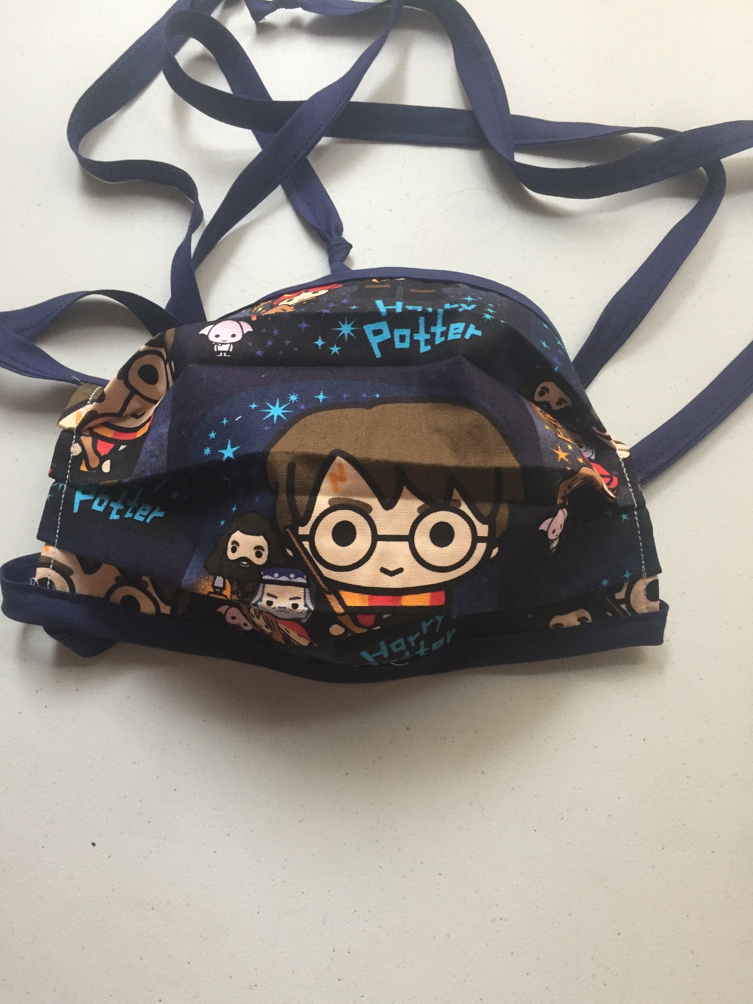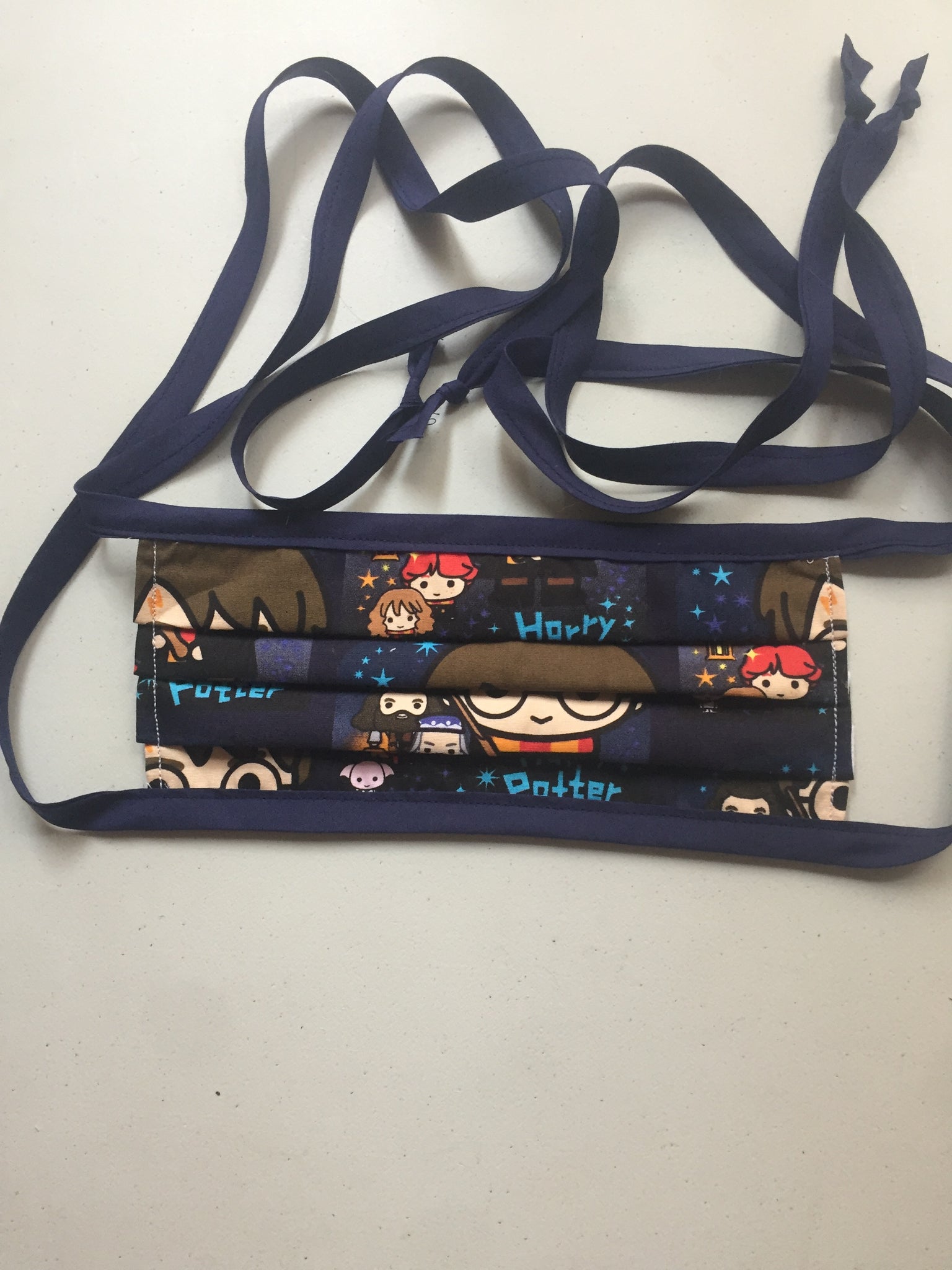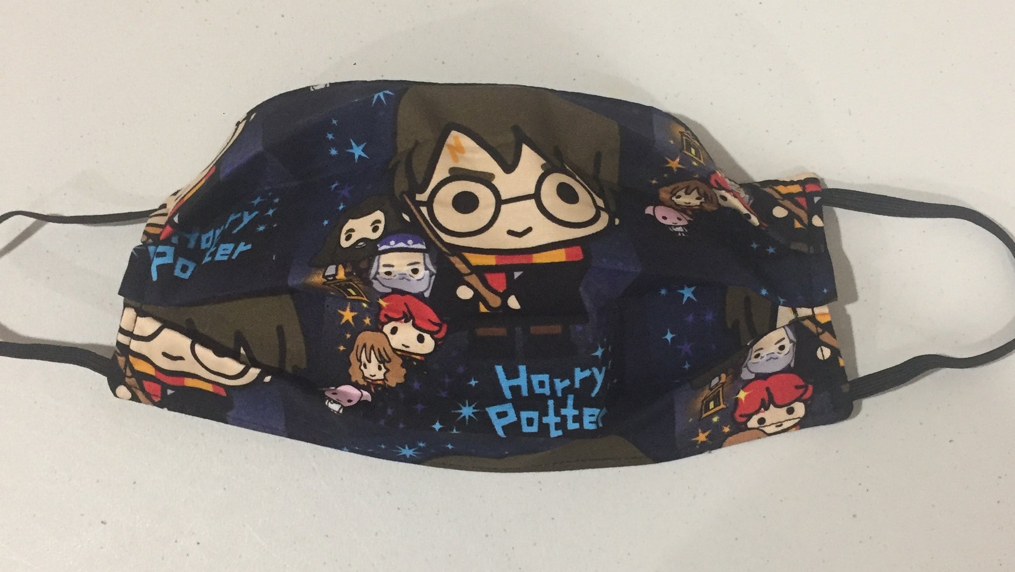 Reusable fabric face mask. 3 Layers - outer layer, middle interfacing and outer layer.