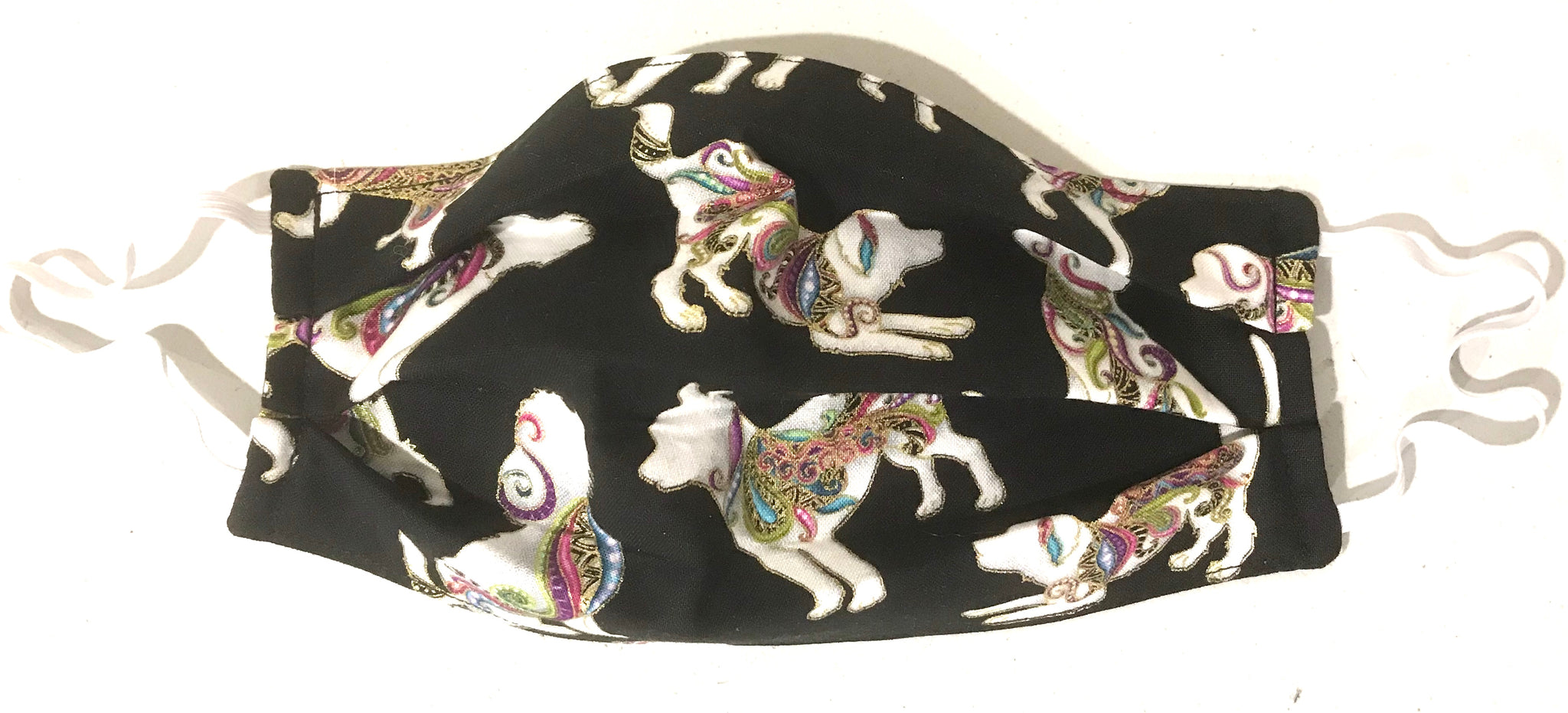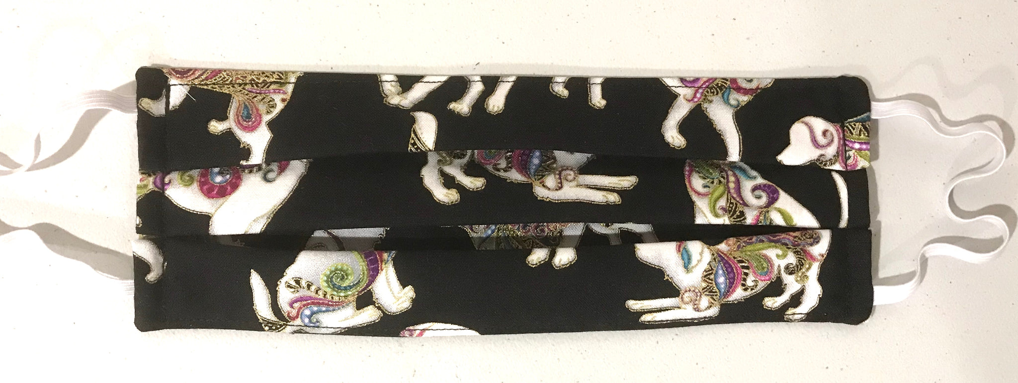 Reusable fabric face mask. 3 Layers - outer layer, middle interfacing and outer layer.