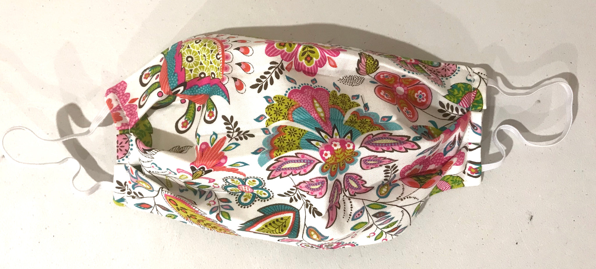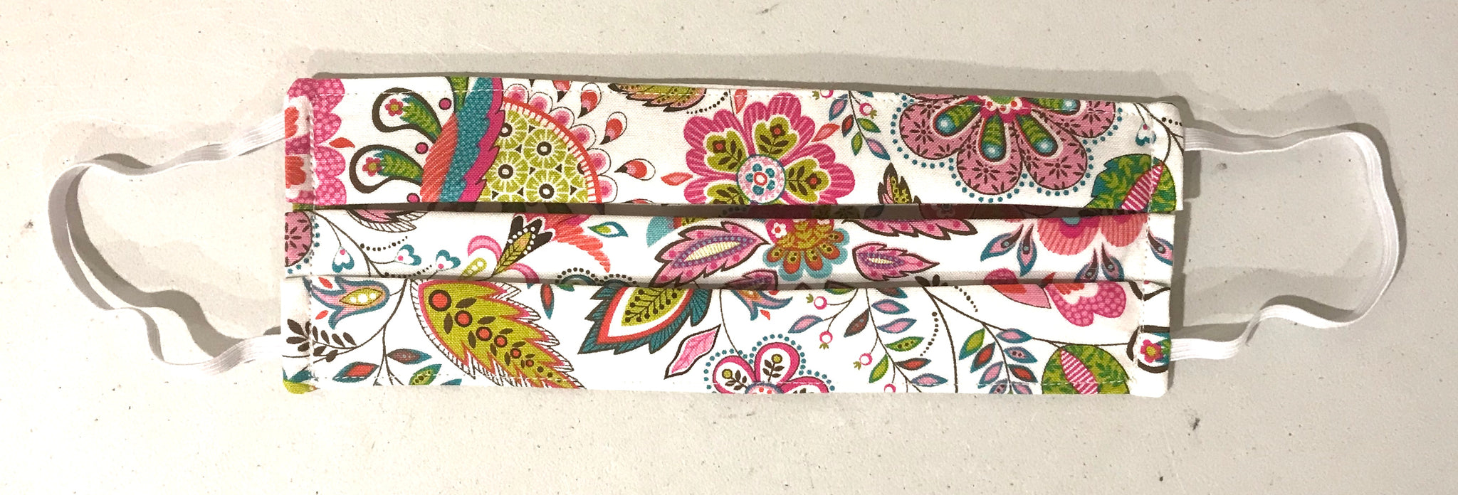 Reusable fabric face mask. 3 Layers - outer layer, middle interfacing and outer layer.