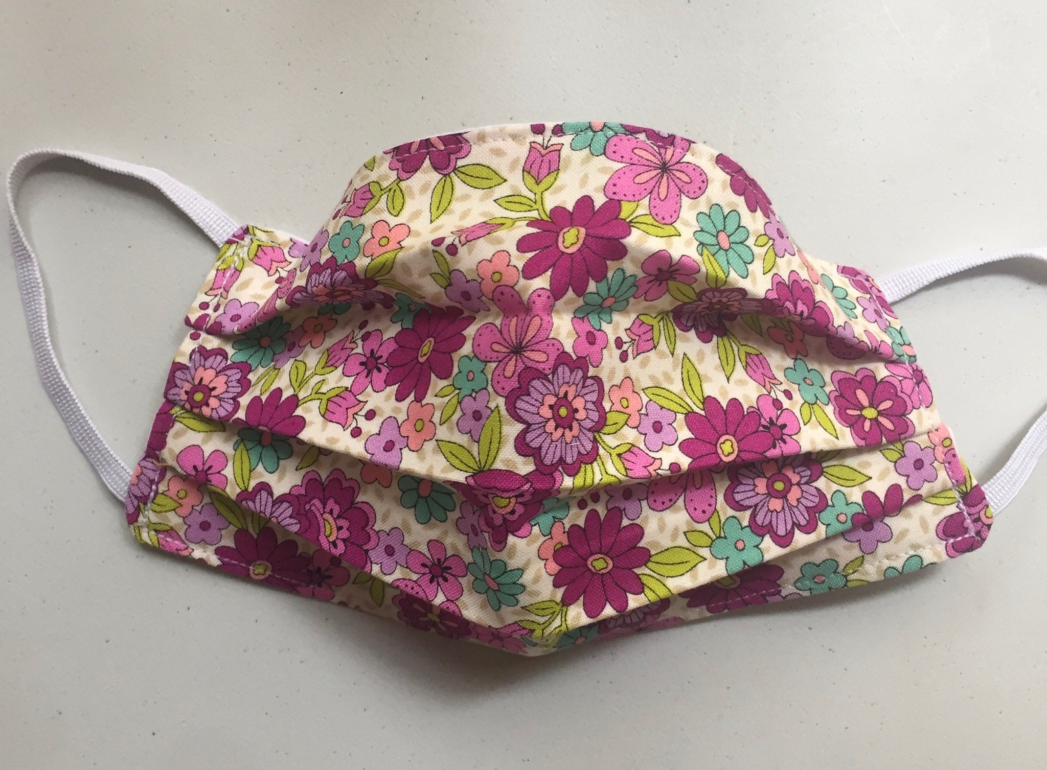 Reusable fabric face mask. 3 Layers - outer layer, middle interfacing and outer layer.