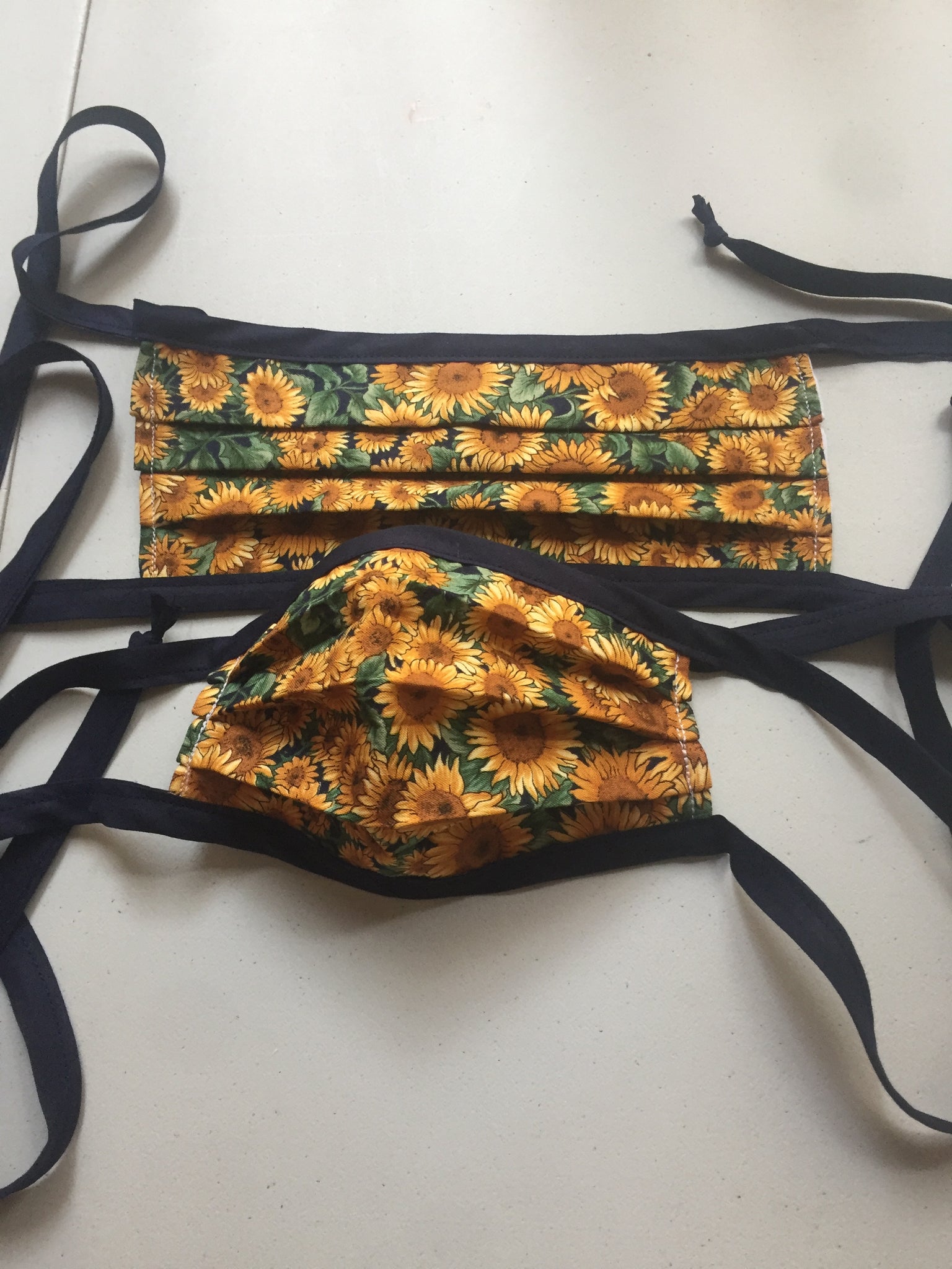 Reusable fabric face mask. 3 Layers - outer layer, middle interfacing and outer layer.